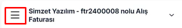 Faturaya ek bilgi eklemek için sağ üst köşede yer alan üç yatay çizgi (≡) simgesine tıklayın.